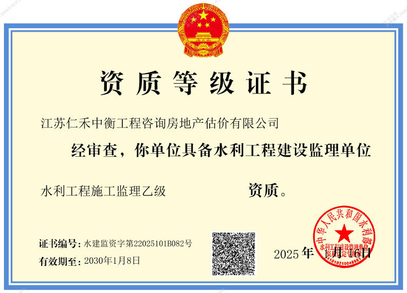 - 水利工程施工監(jiān)理乙級證書
